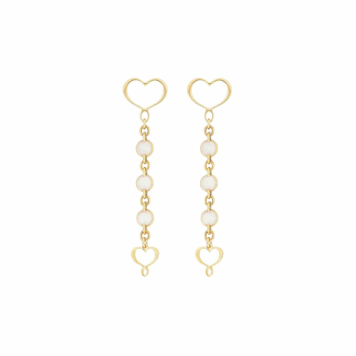Coppia di orecchini ORMES4MP1MS realizzati in argento 925 con galvanica oro giallo ad alto spessore e resistenza. Ciascun orecchino presenta cuore Maman traforato e catena pendente con smalto bianco perlato e piccolo cuore maman all’estremità. Lunghezza totale dell’orecchino 4,5 cm. Chiusura a farfallina.