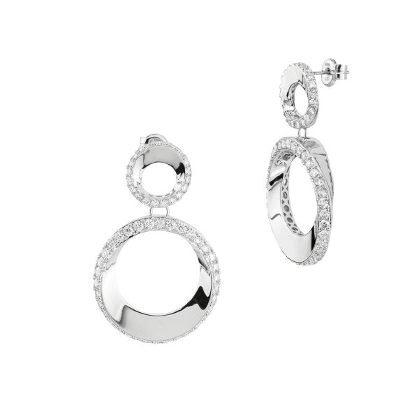 Orecchini pendenti in bronzo rodiato con zirconi. Chiusura a farfallina.