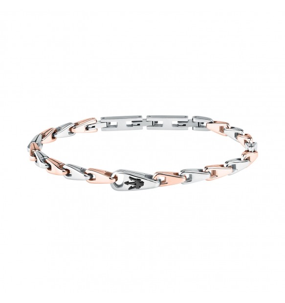 Bracciale uomo in acciaio 316L anallergico, impreziosito da dettagli gold rose e logo con trattamento ip nero. Lunghezza regolabile tramite settori predisposti.