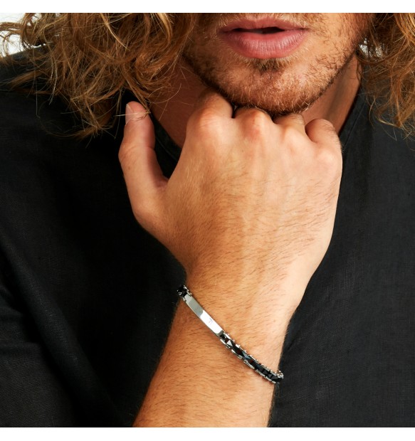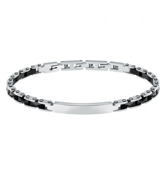Bracciale Sector in acciaio inossidabile e ceramica nera. Lunghezza regolabile tramite settori predisposti.